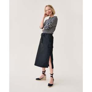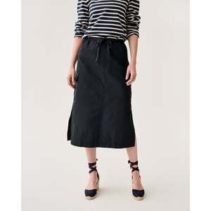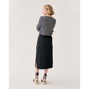 As easy as track pants but a whole lot cuter this skirt is made in our favorite sporty, swishy nylon faille from Italy. It's finished with safari-style patch pockets and a drawstring waist that can sit as high, low, loose, or snug as you like. - Italian nylon faille - 58% polyamide / 42% recycled polyester - Unlined - Adjustable drawstring waist with elastic - Cargo patch pockets - Side slits - Made in India - Machine wash cold, hang dry, low iron; can be dry cleaned; do not bleach.
