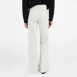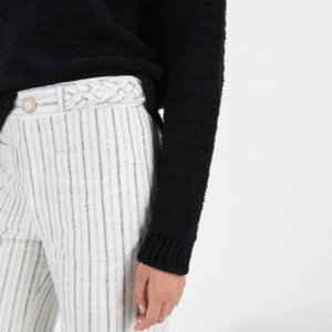 Cotton stripe pants in a mid-waist, straight leg silhouette with braid-embellished waist. 94% Cotton, 5% Wool, 1% Polyamide.