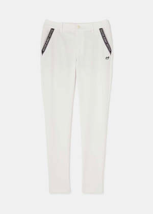 Polyester blend block jacquard stretch pants in white. Logo tape at the pockets Quick-drying Tapered legs Belt loops Embroidered logo2 to the front 90% Polyester, 10% Polyurethane. Imported.