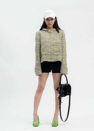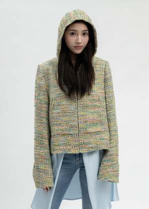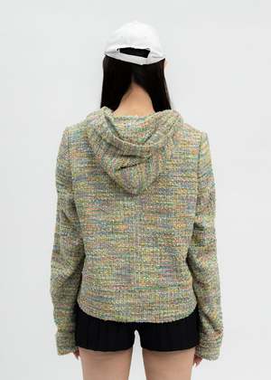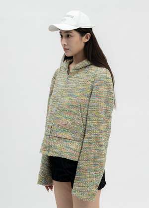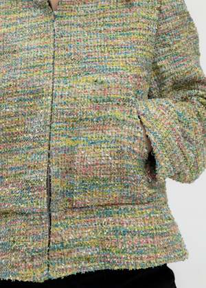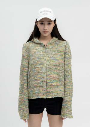 Multicoloured tweed zip-up hoodie from MASU. Features a boxy construction with multicoloured thread detailing throughout. Silver-tone zippered fastening along the front face. Two-pocket styling. Finished with off-white lining and tonal stitching throughout. Regular Fit 45% Nylon, 36% Acrylic, 15% Wool, 4% Polyester Imported Model is wearing size 48 Model is 5'7" (172 cm), 98 pounds (44kg), usually wears S in tops. A size 25 in denim and S in trousers. Size 8 in shoe