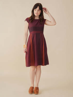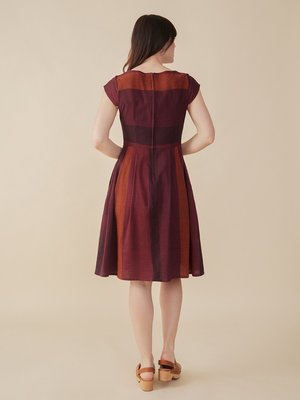 A classic silhouette in a rich tonal burgundy for fall. - 50% Cotton 50% Rayon - Fine weave cotton - Knee length fit & flare, cap sleeve, pleat detail on front and back skirt - Made fair trade in Nepal by one of Mata's longstanding production partners Dry clean recommended