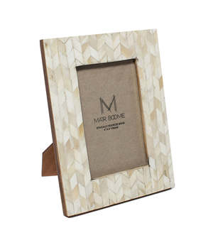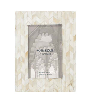 Display your most treasured memories in this photo frame made of cruelty-free, ethically sourced bone in a mosaic chevron pattern inlay. For convenient display, this picture frame features a two-way tabletop easel and two d-rings for hanging. The frame accommodates a 4x6 photo or print, easily accessed with metal swivel tabs and a removable back.