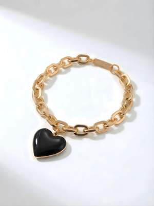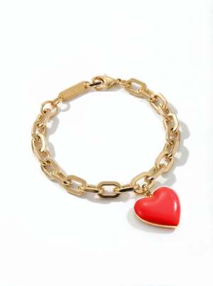 Let this bracelet do the talking. Great as a gift for yourself or others, a keepsake to keep on all day. Heart pendant made in double-sided enamel on gold plated stainless steel Pendant measures approx. 18mm each, with embossed logo2 at the side 18k gold PVD coating on stainless steel bracelet with 19cm length Perfect for daily wear Nickel free Comes with Matter Matters jewellery box and care card