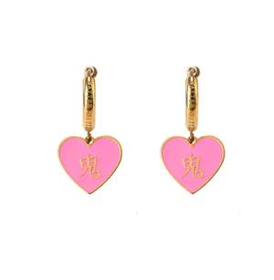 Speak your heart. A wearable statement, find yourself donning these everyday & everywhere. The heart pendants are double sided, attached to quality gold hoops intended for daily wear. Heart pendant made in double sided enamel on gold plated stainless steel Pendant measures approx. 15mm each, with embossed logo2 at the side Hoops made in 18k gold PVD coating on stainless steel, measuring at 1.5cm Perfect for daily wear Resistant to tarnish and corrosion Nickel free Comes with Matter Matters jewellery box and care card