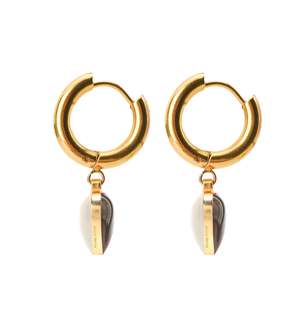 Live with a humble heart. Wearable both sides, find yourself donning on these everyday & everywhere. The heart pendants are double sided, attached to quality gold hoops intended for daily wear. This listing is for a SINGLE earring, be free to mix & match with other colours! Heart pendant made in double sided enamel on gold plated stainless steel Pendant measures approx. 11mm each, with embossed logo2 at the side Hoops made in 18k gold PVD coating on stainless steel, measuring at 1.5cm Perfect for daily wear Resistant to tarnish and corrosion Nickel free Comes with Matter Matters jewellery box and care card