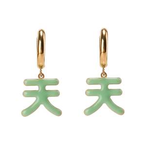 In Chinese culture, it is believed that the divine is referred to the sky, inspiring believers to show immense respect to nature. The sky is prayed to in times of difficulty and in need of guidance, and remains as reminder to stay humble and be kind to all. Pendant made in double sided enamel on gold plated stainless steel Pendant measures approx. 15mm each, with embossed logo2 at the side Hoops made in 18k gold PVD coating on stainless steel, measuring at 1.5cm Intended for daily wear Resistant to tarnish and corrosion Nickel free Comes with Matter Matters jewellery box and care card