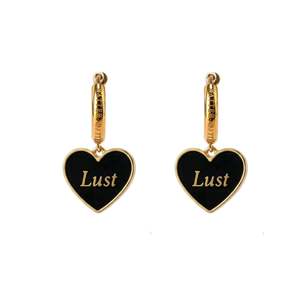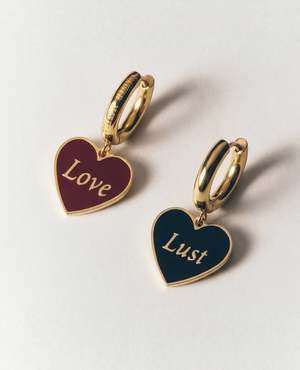 Speak your heart. A wearable statement, these Love/Lust Earrings are designed to be worn every day, everywhere. The heart pendants are double sided and attached to quality gold hoops intended for daily wear. Heart pendant made in double-sided enamel on gold-plated stainless steel Pendant measures approximately 15 mm each, with embossed logo2 at the side Hoops made with 18k gold PVD coating on stainless steel, measuring 1.5 cm Perfect for daily wear Resistant to tarnish and corrosion Nickel free Comes with a Matter Matters jewellery box and care card.