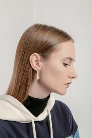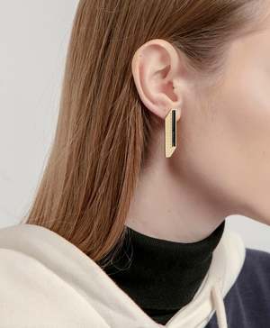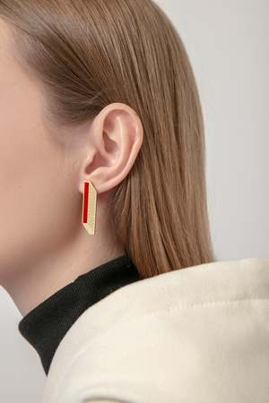 Colour-blocks with striped shadows. Proved easy to wear in a sleek geometric form. Gold Plated Stainless steel + Embossed Logo 925 Sterling Silver earring pins Approx. 3.5cm length Nickel free Comes with Matter Matters Gallery Jewellery box and care card