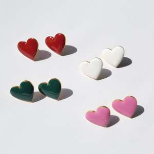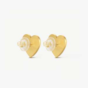 Heart-shaped studs made in 18k gold plated stainless steel with sterling silver ear pins. Measures approximately 2cm each with an embossed logo2 at the side. Nickel free. Suitable for daily wear.