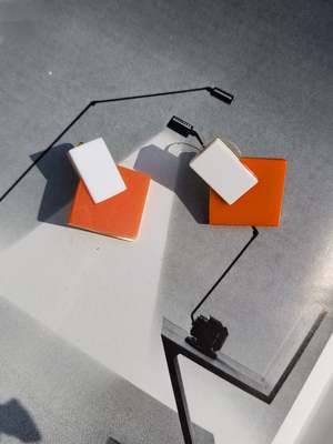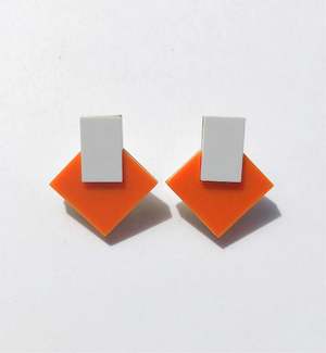Acrylic geometric earrings, backed with 14k gold plated stainless steel. Earring Body : Acrylic on Gold Plated Stainless steel + Embossed Logo Ear post / Pins : 925 Sterling Silver earring pins Nickel free Comes with Matter Matters Gallery Jewellery box and care card