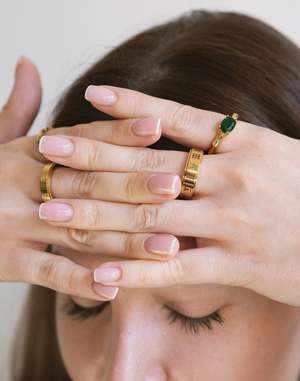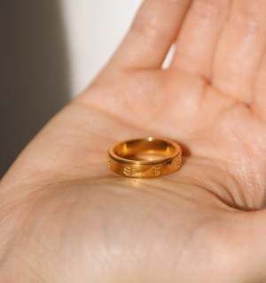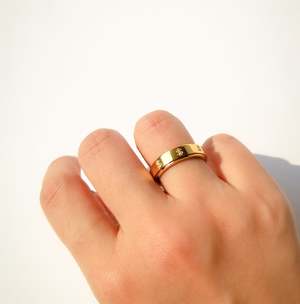 Spin the dollars and keep it coming. The middle section of this ring is built to rotate manually. Enamelled 18k gold PVD coating on stainless steel $ Design spins/ rotates manually Intended for daily wear Waterproof & sweatproof Resistant to tarnish and corrosion Nickel free