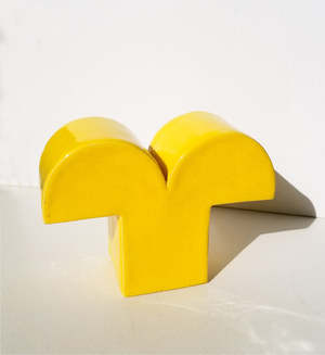 A pair of yellow & black ceramic objects, perfect alone or puzzled together. Handcrafted object Stamped with artist signature Only 1 pair available