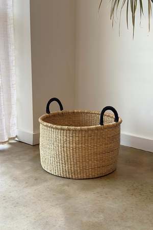 This beautifully handwoven hamper is crafted from natural materials and brings a touch of rustic charm to any room while keeping laundry neatly contained. The sturdy yet flexible weave holds its shape, and the comfortable leather handles make transporting loads to the washing machine easy, even for little helpers. Its generous medium size is perfect for families, holding a substantial amount of laundry without taking up too much space. This hamper provides a designated, attractive spot for clothing, simplifying your routine and enhancing your home environment. PRODUCT FEATURES: - Handwoven from natural materials for a unique, artisanal look - Sturdy yet flexible weave to hold its shape and contents - Comfortable, durable leather handles for easy transport - Generous medium size, ideal for family laundry needs - Adds a touch of natural, rustic style to any room