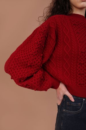 Thick cable knit cropped sweater with bobble detailing. With a relaxed fit and round neckline. 100% RWS wool. Dry clean or hand wash. Model is 5'11" and is wearing a size UK 8. UK SIZING