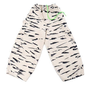 Cropped cookin' pants with 5 massive pockets. Elastic waist and drawstring. Made in LA. High fiber and positive vibes. Soft-washed cotton canvas. Re-ordering? This newest sizing fits approximately 1 inch smaller in the waistband than the previous new sizing. See size chart below. - Elastic waist and drawstring - On-seam pockets, big patch pockets at side, back pocket - Tong loop, mock fly - Machine washable - 100% cotton canvas - Hand dyed - Cold gentle wash. Wash separately. Hang dry or dryer safe. - Model Indigo is 5'9" and wears size M Size chart (in inches): XXS: Waist 22-25, Hip 43, Rise 15, Inseam 23, Length 35 XS: Waist 24-28, Hip 44, Rise 16, Inseam 24, Length 36 S: Waist 26-30, Hip 47, Rise 16, Inseam 25, Length 37 M: Waist 29-32, Hip 50, Rise 17, Inseam 26, Length 38 L: Waist 32-35, Hip 52, Rise 17, Inseam 26, Length 40 XL: Waist 36-39, Hip 54, Rise 17, Inseam 26, Length 40 2XL: Waist 41-44, Hip 56, Rise 17, Inseam 26, Length 40.3 3XL: Waist 42-45, Hip 58, Rise 18, Inseam 26.5, Length 41 Waistband is flexible and adjustable. Measurements are taken unstretched and stretched (e.g., XS waistband = 24" unstretched to 28" stretched). Rise: Front crotch to top of waistband. Hip: Across the widest part of the pant measured below pocket opening. Length: Top of waistband to hem. Inseam: Measured from front crotch to hem. Sizing is a construct. Meals clothing is unisex and is a rough average of traditional women and men's sizing.