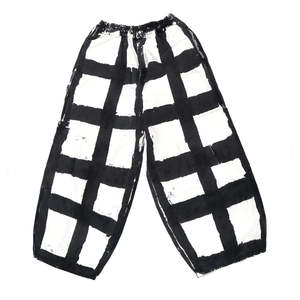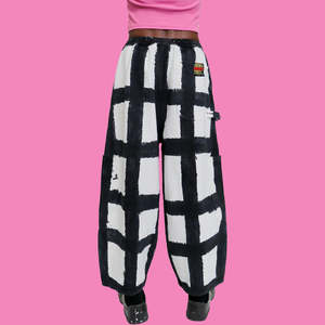 Cropped cookin' pants with 5 massive pockets. Elastic waist and drawstring. Made in Los Angeles. Licorice Black, the color/flavor. High fiber and posi-vibes. Soft-washed cotton canvas. This newest sizing fits approximately 1 inch smaller in the waistband than the previous sizing. See size chart for details. - Elastic waist and drawstring - On-seam pockets, big patch pockets at side, back pocket - Tong loop, mock fly - Machine washable - 100% cotton canvas - Hand dyed - Cold gentle wash. Wash separately. Hang dry or dryer safe. - Model Indigo is 5'9" and wears size M Size chart: XXS: Waist 22-25", Hip 43", Rise 15", Inseam 23", Length 35" XS: Waist 24-28", Hip 44", Rise 16", Inseam 24", Length 36" S: Waist 26-30", Hip 47", Rise 16", Inseam 25", Length 37" M: Waist 29-32", Hip 50", Rise 17", Inseam 26", Length 38" L: Waist 32-35", Hip 52", Rise 17", Inseam 26", Length 40" XL: Waist 36-39", Hip 54", Rise 17", Inseam 26", Length 40" 2XL: Waist 41-44", Hip 56", Rise 17", Inseam 26", Length 40.3" 3XL: Waist 42-45", Hip 58", Rise 18", Inseam 26.5", Length 41" Waistband is flexible and adjustable. Measurements are taken unstretched and stretched (e.g., XS waistband = 24" unstretched - 28" stretched). Rise: Front crotch to top of waistband. Hip: Across the widest part of the pant measured below pocket opening. Length: Top of waistband to hem. Inseam: Measured from front crotch to hem. Meals clothing is unisex and is a rough average of traditional women and men's sizing.