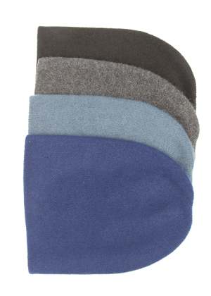 100% Cashmere. Thick, luxurious, and double-sided for warmth with purl side out and double layer. Fits true to size.