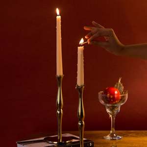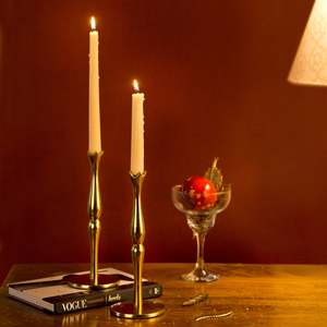 Grace your holiday tablescape with the timeless allure of these handcrafted candlesticks. Standing 9 inches tall, their sculpted stems and gleaming brass finish catch the light beautifully, creating a warm and festive glow. Perfect for adding height and drama to seasonal centerpieces, these heirloom-worthy pieces effortlessly elevate any mantel, dining table, or holiday vignette. Set of 2 candlesticks 9" tall. Product ID: 100326.