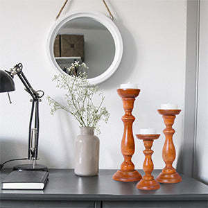 Crafted with elegance, the Tuli Candle Holder Set fits a variety of candles and features felt pads to protect your surfaces. Handcrafted by artisans who fuse traditional techniques with modern design, each piece embodies passion and dedication. These sleek holders bring timeless charm to any space, whether as a centerpiece, mantle accent, or dcor statement. Small 6" | Medium 9" | Large 12"