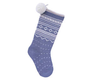 Add a touch of traditional holiday warmth to your home with this beautifully knit holiday stocking. Featuring a rich grey background, this stocking is adorned with intricate ivory Nordic-inspired patterns that evoke the cozy charm of winter. The classic design is complemented by a plush, oversized pom-pom attached to the cuff, adding a playful and festive detail. Perfect for hanging by the fireplace, this stocking is as functional as it is decorative, offering plenty of room for treats, small gifts, and holiday surprises. The durable cotton weave ensures that this stocking will become a cherished part of your holiday traditions for years to come. 18" stocking 100% cotton Hand wash with mild soap; lay flat to dry Our stockings are handmade in Armenia. This collectsive was started with seed funding from Save the Children to create jobs and help promote Armenian crafts. The project employs women who were previously without work in Armenias struggling economy. They enjoy a safe work environment and earn a living wage with a respect for their cultural traditions. Their expert artisanship can be seen in the quality of our beautiful stockings.