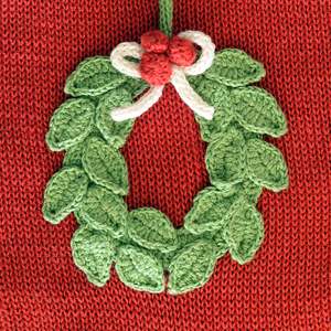 Designed with a rich red base, this stocking is adorned with a charming crocheted green wreath, complete with a delicate bow and berry accents, making it a delightful centerpiece for your holiday dcor. The creamy ivory cuff, toe, and heel provide a lovely contrast, while the subtle green trim adds a refined finish. Perfect for hanging by the fireplace, this stocking is as functional as it is decorative, offering plenty of room for treats, small gifts, and holiday surprises. The durable cotton weave ensures that this stocking will become a cherished part of your holiday traditions for years to come. 18" stocking 100% cotton Hand wash with mild soap; lay flat to dry Mlange Collection's stockings are handmade in Armenia. This collectsive was started with seed funding from Save the Children to create jobs and help promote Armenian crafts. The project employs women who were previously without work in Armenias struggling economy. They enjoy a safe work environment and earn a living wage with a respect for their cultural traditions. Their expert artisanship can be seen in the quality of our beautiful stockings.