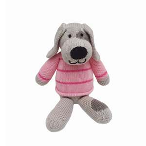 Share the love with this adorable hand-knit Valentine Puppy Toy! With its floppy ears, sweet embroidered face, and cozy pink striped sweater, this charming plush makes the perfect gift for little ones or loved ones. Thoughtfully crafted from soft, child-safe yarn, its a cuddle companion designed to bring smiles to all ages. 10" tall (standing) 100% cotton exterior, polyester filling Hand wash, air dry Handmade, fairly traded Our whimsical designs are handmade by knitting artisans in Lima and in remote rural villages in Peru. We work closely with organizations dedicated to empowering women through income generating projects. They enjoy a safe work environment and earn a living wage with a respect for their cultural traditions.