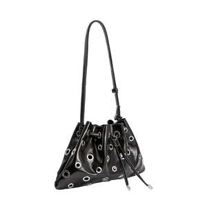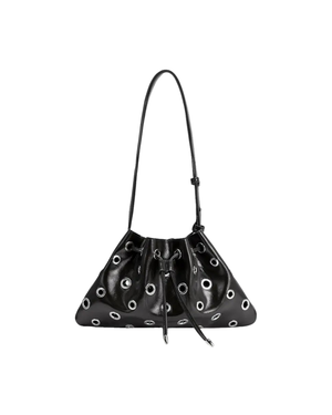 The Paloma Recycled Vegan Shoulder Bag by Melie Bianco features bold grommets and ample space for your essentials. The adjustable strap allows for versatile wear, either over the shoulder or crossbody. Crafted from recycled vegan leather. Dimensions: 12"W x 7.25"H x 0.5"D. Strap length: 24"43.5". Ethically made in China.