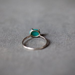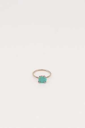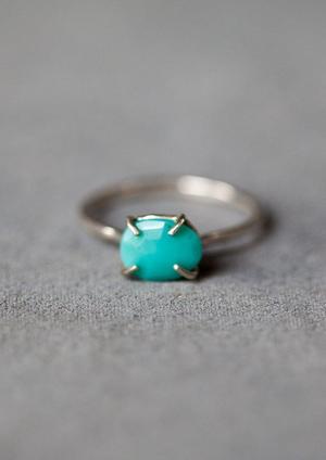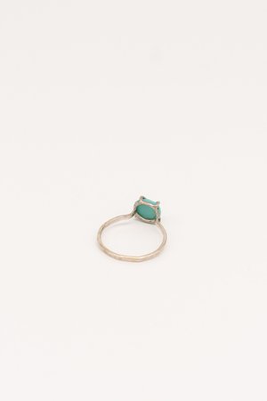 Melissa Joy Manning Ring in Sterling silver with prong setting of a lone mountain turquoise ring. Made in Berkeley