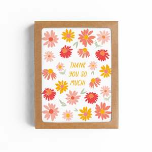 A beautiful thank you card set inspired by coneflowers in summer gardens. Pair this card with fresh flowers for a hostess gift or a summer garden party. Designed and printed in the USA on bright white matte stock. Blank inside for your personal message. DETAILS: - Set of 8 A2 size (4.25" x 5.5") folded cards with envelopes - Matte finish cards - Blank inside - 100% post-consumer envelope PACKAGING: - Packaged in eco kraft box