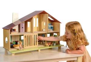 This retro-style dolls house is based on the mid-century modern style of architecture that emphasizes clean lines, open spaces, and a connection to nature. The styling is complete with the pebble dash style chimney breast that rises up from the base through to the roof. The sliding grill on the ground floor allows access to the small urban-style strip of lawn where dollies can sunbathe or water the plants. There are 6 rooms to furnish and a starter set of modernist furniture is included: a cooker and fridge, dining table and 2 chairs, bath and vanity unit, double bed and wardrobe, fifties-style sofa with small plant, lamp, and coffee table. A potted plant and a sunbed are on the lawn. - Recommended Age: 3 years+ - Dimensions: 29.33" x 10.63" x 19.49'' - Weight: 14.09 lbs