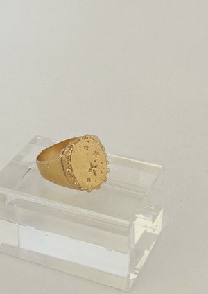 Hand carved signet paying homage to the stars. ---------------- Gold plate over recycled brass.
