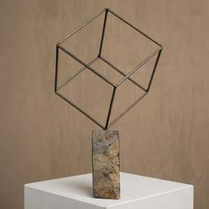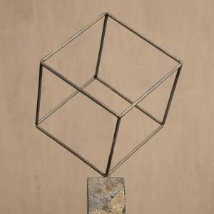Maker: Meso Goods The Single Cube sculpture is crafted in Sabana Grande, Honduras using metal and rock. Each piece is meticulously made by skilled artisans and then assembled to create a unique piece of art. Each piece will have slight variations due to its unique process. Metal + Rock Dimensions: 10" W. x 10" D. x 17.25" H. Every piece is made to order.