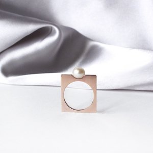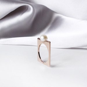 Our minimal Proton ring re-issued with freshwater white pearl elegantly set in 14k rose-gold. 6mm diammeter freshwater white pearl; 14k-yellow rose plated This piece is made-to-order just for you. Please allow 2-3 weeks for delivery. Made in Los Angeles