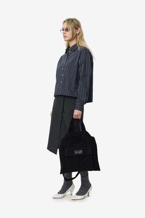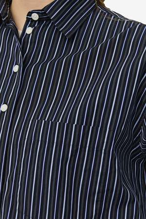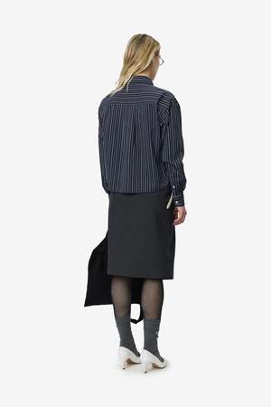 The New Format Shirt in Black Office Stripe by mfpen is a women's apparel style. Style code: W126-003 Season: SS26 Collection type: Main Color: Black Office Stripe (filter color: Black).