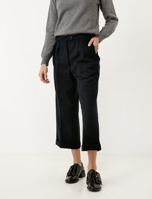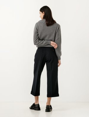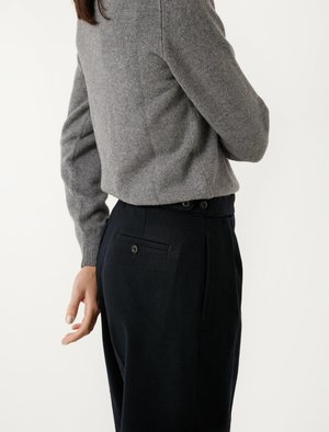 A wide leg cropped and cuffed trouser with double pleat detailing and two button tab adjusters at the waistband, which features a concealed ticket pocket detail. In seam pockets are placed at each side, and the back features one large patch pocket and one button-through welt pocket. - Made in Portugal - 82% wool, 18% cotton - Hand wash - Jasna is 5'8"; bust 34"; waist 27.5"; hips 36"; wears a size small
