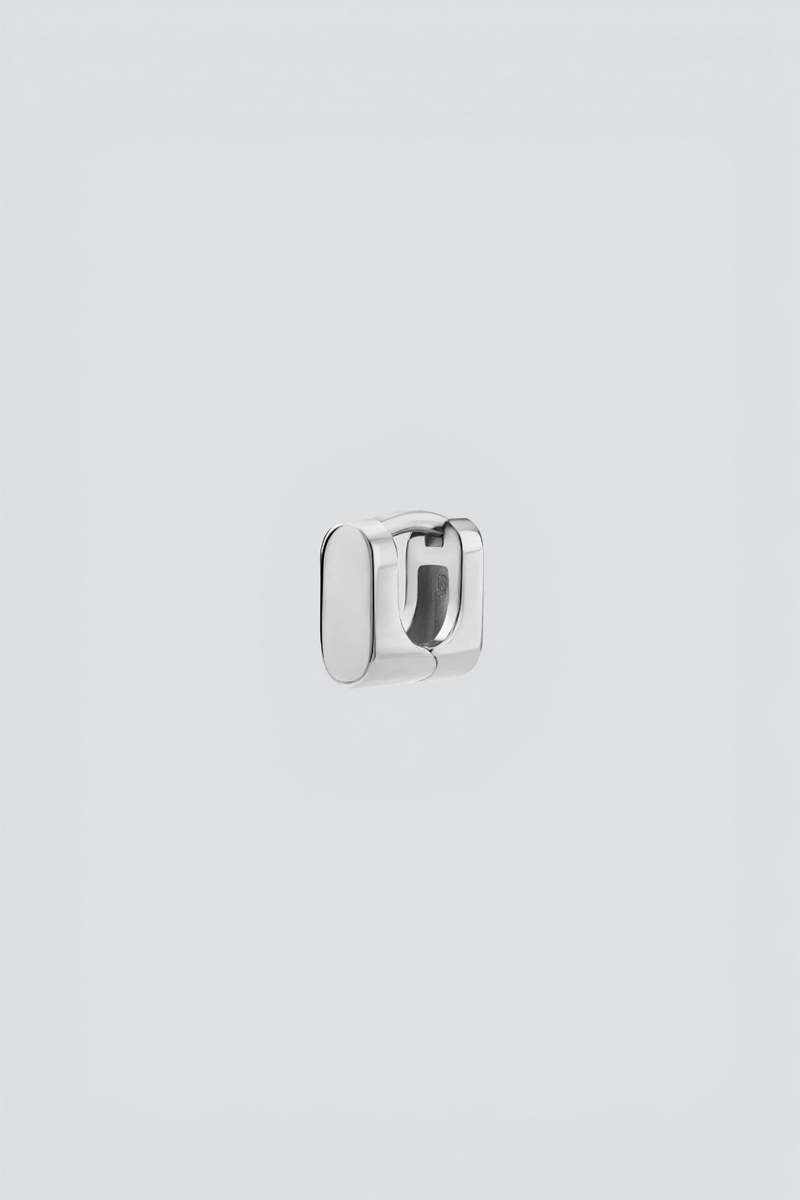 Sterling Silver Tyson Huggie Earring from Miansai. A subtle statement piece, the Tyson Huggie is an earring inspired by bold, modern architecture and design. The lightweight statement earring can be worn on its own or as the base of an ear stack. Width: 4mm Height: 4mm Gauge: 1mm Type: Jewelry