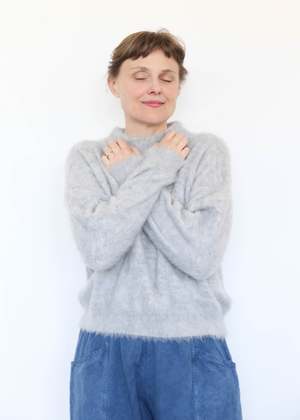 Textured brushed sweater with dropped shoulders and crew neckline in the perfect shade of grey. Instantly adds a pop of texture to your fall wardrobe. - 60% Baby Alpaca / 35% Recycled Polyamide / 5% Merino Wool - Made in Peru