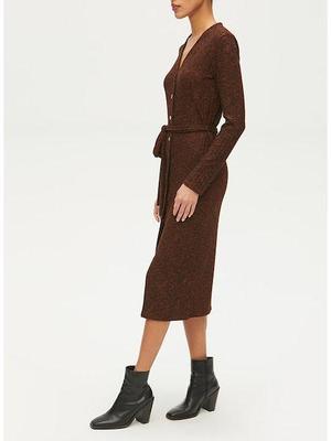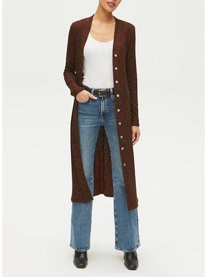 Is she a cardigan or is she a dress? Turns out she is both! This plush rib fabric feels so luxe and perfect for fall in a glorious marled rust tone. Button and belt it to wear as a flattering dress, or unbutton and wear over your favorite jeans and T-shirt for a layered fall look. We can't decide which look we prefer! - 53% Rayon/ 43% Polyester/ 4% Spandex - Made in Los Angeles - Midi Length - True to Size
