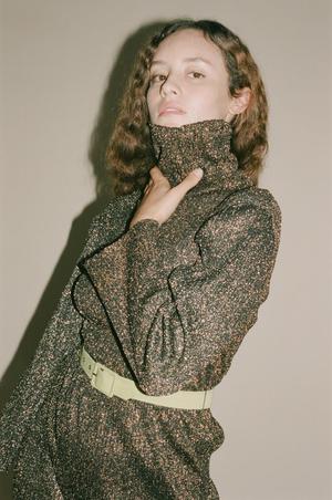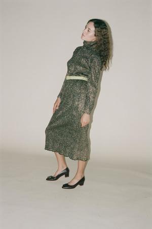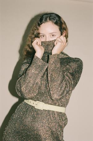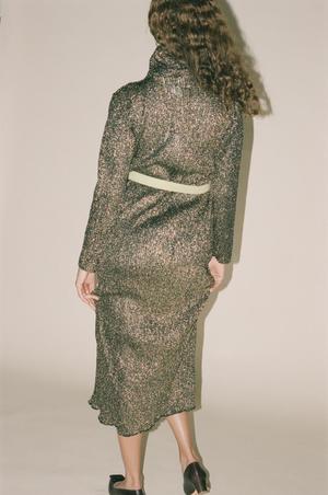Michons Marigot Slinky Dress - Long sleeve turtleneck dress. Comes with matching belt. - Fabric: 100% lurex - Made in Canada - Jamie is wearing size S