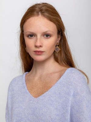 14K gold-filled drop post earrings with a 1.9" length. Made from Miyuki glass beads and Swarovski Crystals. Designed and handcrafted in USA.