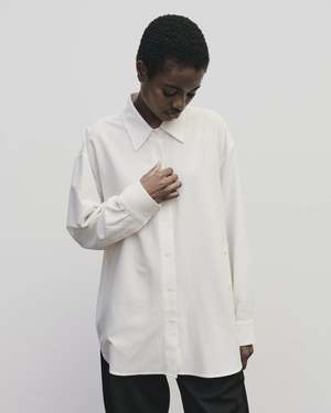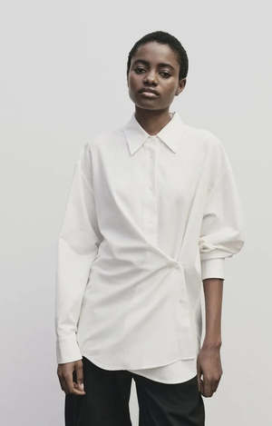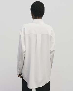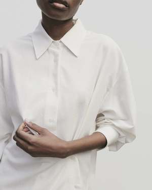 Oversized shirt with a textured cotton blend fabric and additional buttons at the side for an asymmetrical look if desired. Designed for an oversized fit. Take your usual size for the intended look or go down a size for a neater look. Model is wearing a size S. 41% cotton, 39% rayon, 20% recycled polyester Hand wash cold Imported, China / Fabric made in South Korea Sizing: Bust: XS-48, S-50, M-52, L-53 1/2 Length: XS-31, S-31 1/2, M-32, L-32 1/2