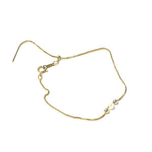 Bracelet with single white freshwater pearl slider and extended charm length. Measures 6.25" with 1.75" dangle. 14K yellow gold fill, freshwater pearl. Made in Sechelt.