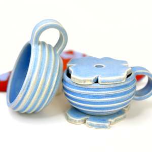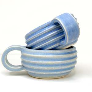This set includes two 5 oz handcrafted clay mugs inspired by the freshness of spring, bringing a touch of artisanal charm to your everyday rituals. Each piece is uniquely handmade without molds, ensuring no two are exactly alike. Glazed with food-safe finishes, they are perfect for a cozy cappuccino or a generous 5 oz pour. Embrace the beauty of imperfection and enhance your daily moments with sustainable, handcrafted sophistication. Clay: BB Mix + sand Glaze: Semi-matte color Blue Frost Handcrafted from USA-sourced clay with unique, mold-free, small-batch production. Glazed finish (not microwave-safe). Handwashing is recommended to prevent surface decay and scratches. Please note that slight variations in size may occur due to the clay's natural behavior during the drying and firing process.