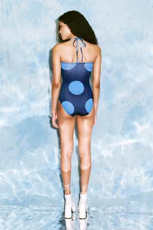 The Simone Maillot features a mid-cut leg and various strap options. The front is fully lined for comfort. Constructed from recycled spandex and digitally printed in Montreal, with prints designed by Daniel Innes. Part of the 2025 Disruptive Pattern line, inspired by 1960s counterculture. All suits are made to order and require 3-9 business days for production.
