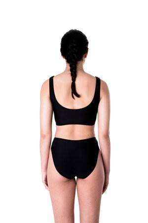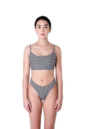 The Zip bottoms are a mini french-cut bottom. These bottoms come lined in the front and are available in our Dada print, black, terra cotta, and green. These bottoms are part of our 2019 collectsion, Poetry of Forms. This collectsion is inspired by the paintings, poetry, and sculpture of Jean Arp. These bathers are lined and are constructed from high quality Italian fabric comprised of 78% recycled nylon and 22% spandex.