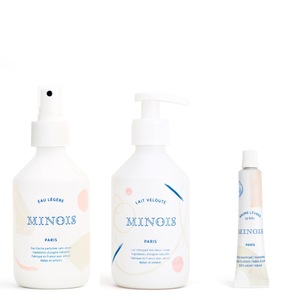 A luxurious full line of natural baby skincare made 100% in France certified to be free of toxins. Fresh, pretty and colorful, Minois offers a line of care products including gel, cream, cleansing milk, perfumed water and bathing foam. Minois is gentle and fun for newborns and up. Ultra-nourishing Lip Balm - 12ml Its 100% natural formula nourishes and repairs babies and children's lips, from birth. Light Water - 250ml A perfumed, alcohol-free fresh water delicately scents babies and children's skin and hair. Soothing Milk - 250ml Gentle facial cleansing milk delicately cleanses any facial impurities with no need to rinse.
