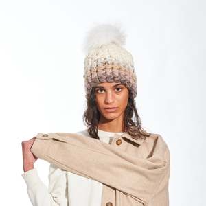 Material | 100% fine merino wool, hand spun and hand crocheted at the Mischa Lampert Soho studio in the signature chunky style. Design | The beanie stripe with XL pom. Size | Regular 22.5"; our classic beanie, the perfect fit. Deep 23.5"; additional length and width provide extra warmth and coverage. Please keep in mind that these pieces are handmade and sizes are approximate. Care | Follow standard care for 100% merino wool knits.