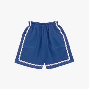 A vintage-style pull-on short in organic Pima cotton jersey, with a gathered elastic waist, two patch pockets, and one back pocket. Finished with rickrack appliqu trim. This jersey is mid-weight and soft, with a little structure. 100% Organic Pima Cotton Made in Peru. Delicate machine or hand wash, cool water, mild soap, dry flat.
