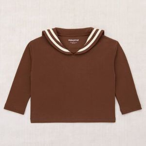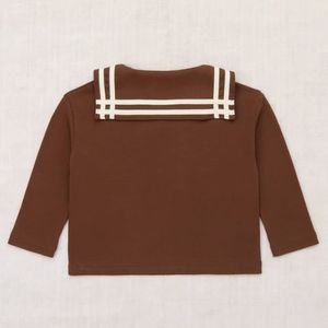 A boxy, vintage-style long-sleeved top in organic Pima cotton, featuring a bateau sailor collar with contrast appliqu stripe detailing. 100% Organic Pima Cotton Made in Peru Delicate machine or hand wash in cool water with mild soap. Dry flat. Do not bleach.