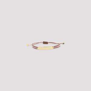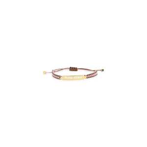 Women > Jewelry > Bracelets Miu Miu pink and brown cord bracelet crafted from woven cord, featuring a gold-toned metal plaque with logo2, an adjustable fit, and metal aglets.
